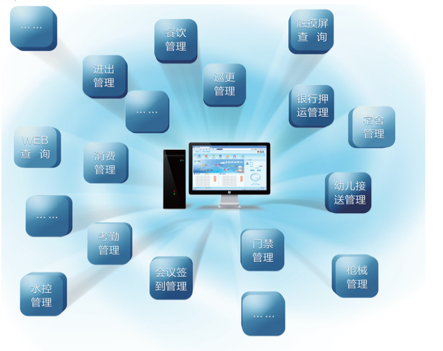 系統以一卡通管理系統為核心,通過網絡連接各功能模塊構成系統的基本框架,由于系統按模塊設計,可根據管理和發展的需要量體裁衣,分步實施,任意增減功能和擴充規模。